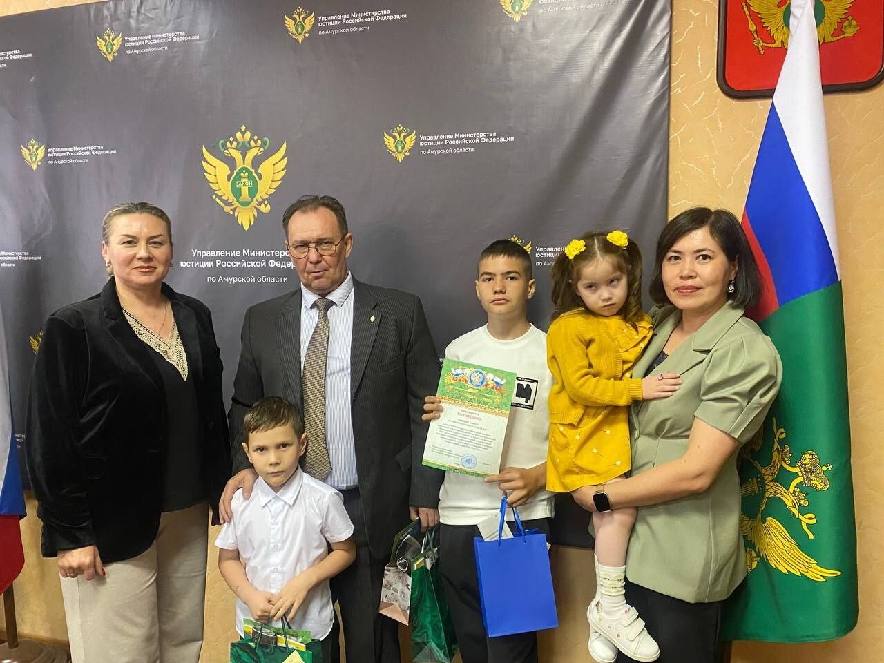 В Управлении Министерства юстиции Российской Федерации по Амурской области состоялось награждение детей и внуков работников Амурского филиала ФБУ Дальневосточного регионального центра судебной экспертизы Минюста России, принявших активное участие в акции «Победа».